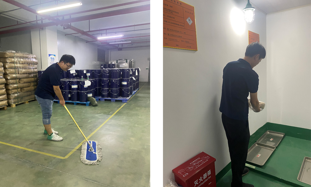 步骤4:泄露物清理完毕,移除消防沙,清洗地面,处置残留物。